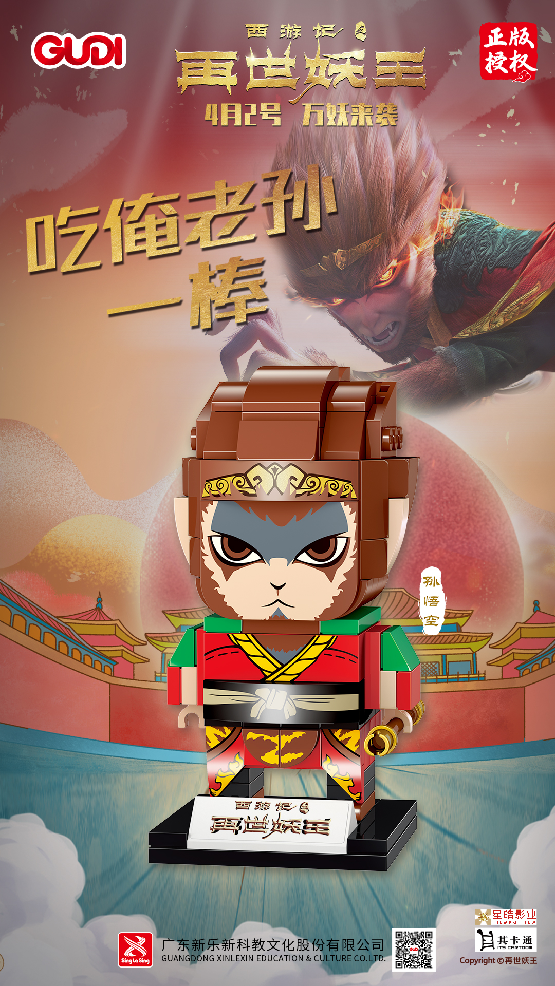 近日,隨著電影《再世妖王》上映,古迪積木官方爆出全新IP聯(lián)名款——古迪積木X再世妖王拼裝積木,再一次成為人們關(guān)注的焦點(diǎn)。首次曝光并推出市場的,是電影《再世妖王》的主角——孫悟空。