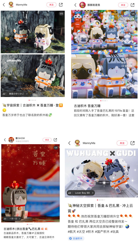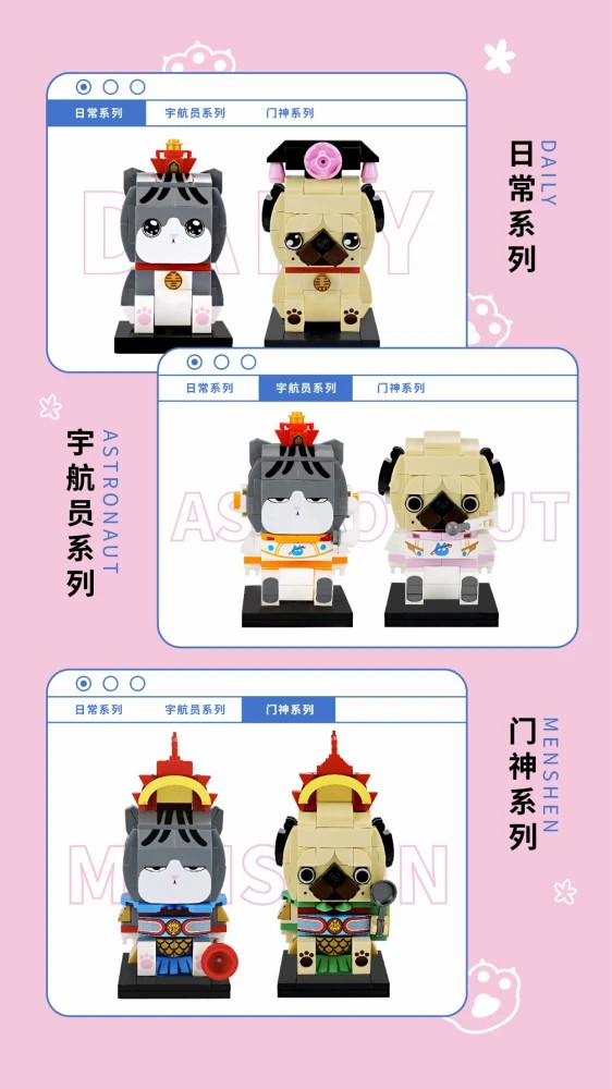 吾皇萬睡×古迪積木此次共上線“經(jīng)典系列、航天系列、門神系列”的六款聯(lián)名積木。為最大限度地還原#吾皇巴扎黑#的可愛形象,系列積木特別采用了具有弧度顆粒方塊進(jìn)行設(shè)計(jì)制作,為積木的整體造型增添了視覺上的Q萌感,還原了吾皇傲嬌、巴扎黑呆萌的小性格。