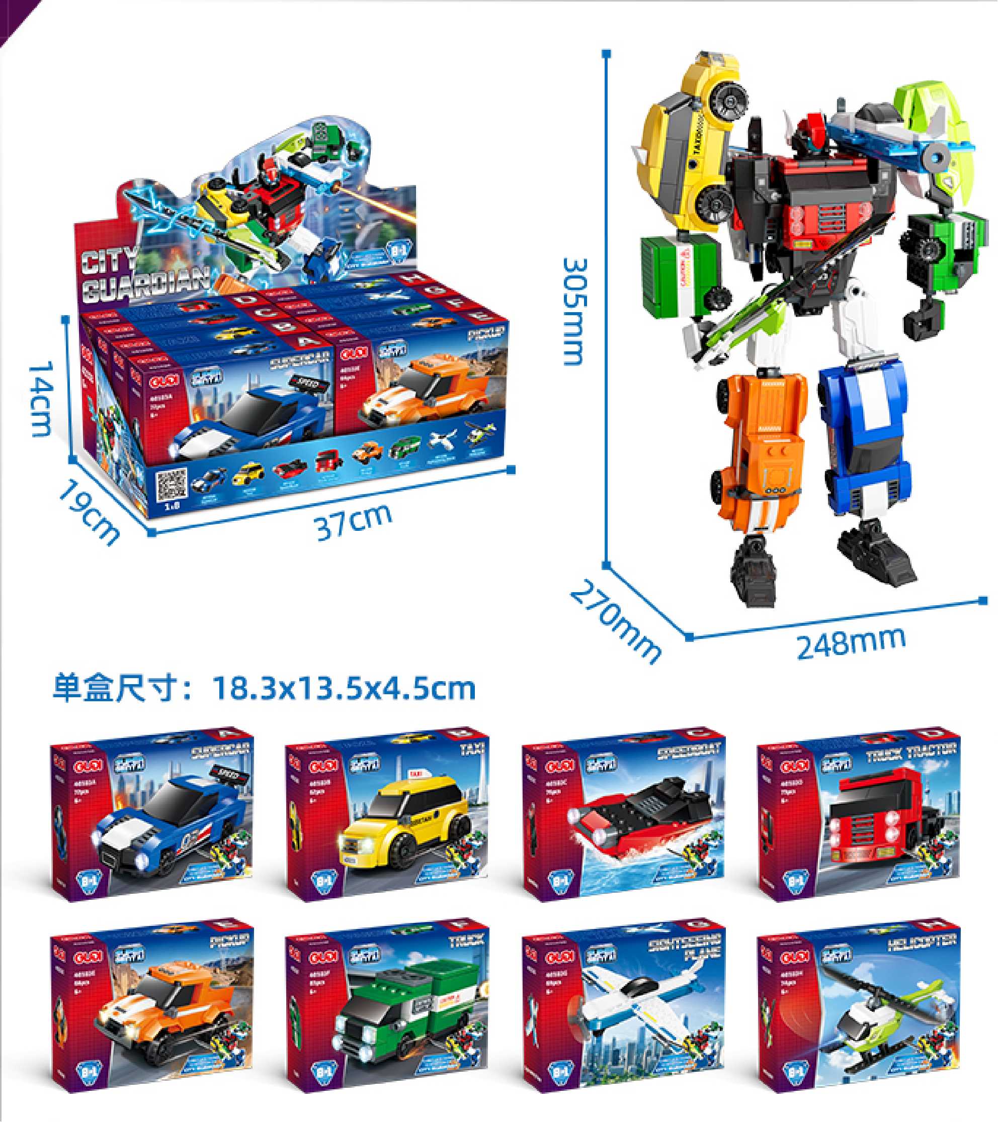 - Description:40103A-Sports car-72PCS; 40103B-Taxi-62PCS; 40103C-Speed boat-76PCS; 40103D-Tractor-73PCS; 40103E-Pickup truck-66PCS; 40103F-Van-83PCS; 4010G-Sightseeing plane-69PCS; 40103H-Helicopter-74PCS